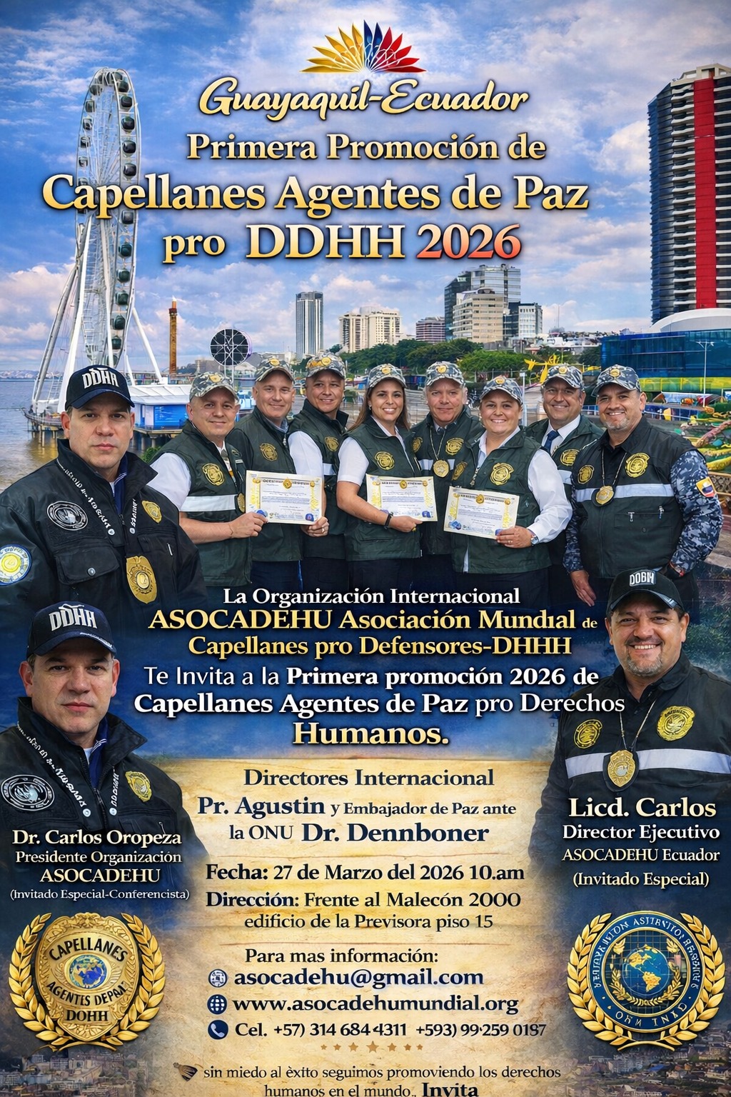 Es un honor dirigirme a ustedes en nombre de la Asociación Mundial de Capellanía en Defensa de los Derechos Humanos (Asocadehu Mundial). Soy el Lic. Carlos Oropeza y me complace extenderle una cálida bienvenida a nuestra comunidad dedicada a la promoción y protección de los derechos fundamentales de todas las personas en el mundo.